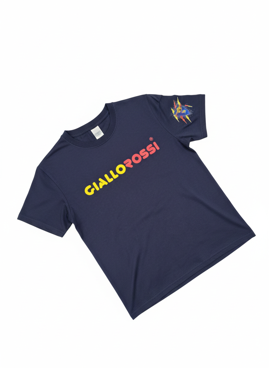GIALLOROSSI – T-SHIRT BLU SCRITTA GIALLOROSSI COTONE MANICA CORTA GRAFFIO BAMBINO