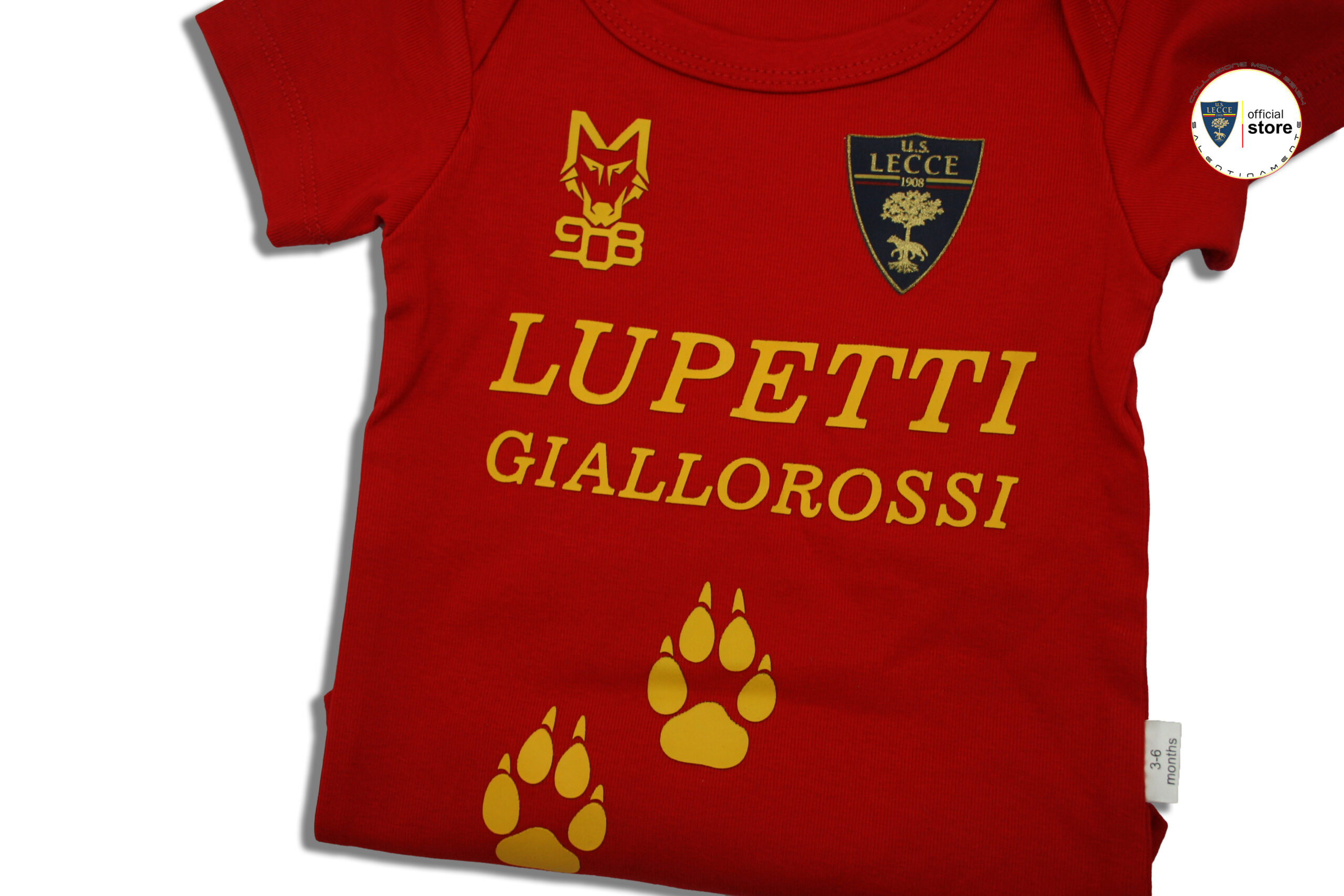 M908 – BODY NEONATO U.S.LECCE LUPETTI GIALLOROSSI MANICA CORTA ROSSO O MANICA LUNGA BLU