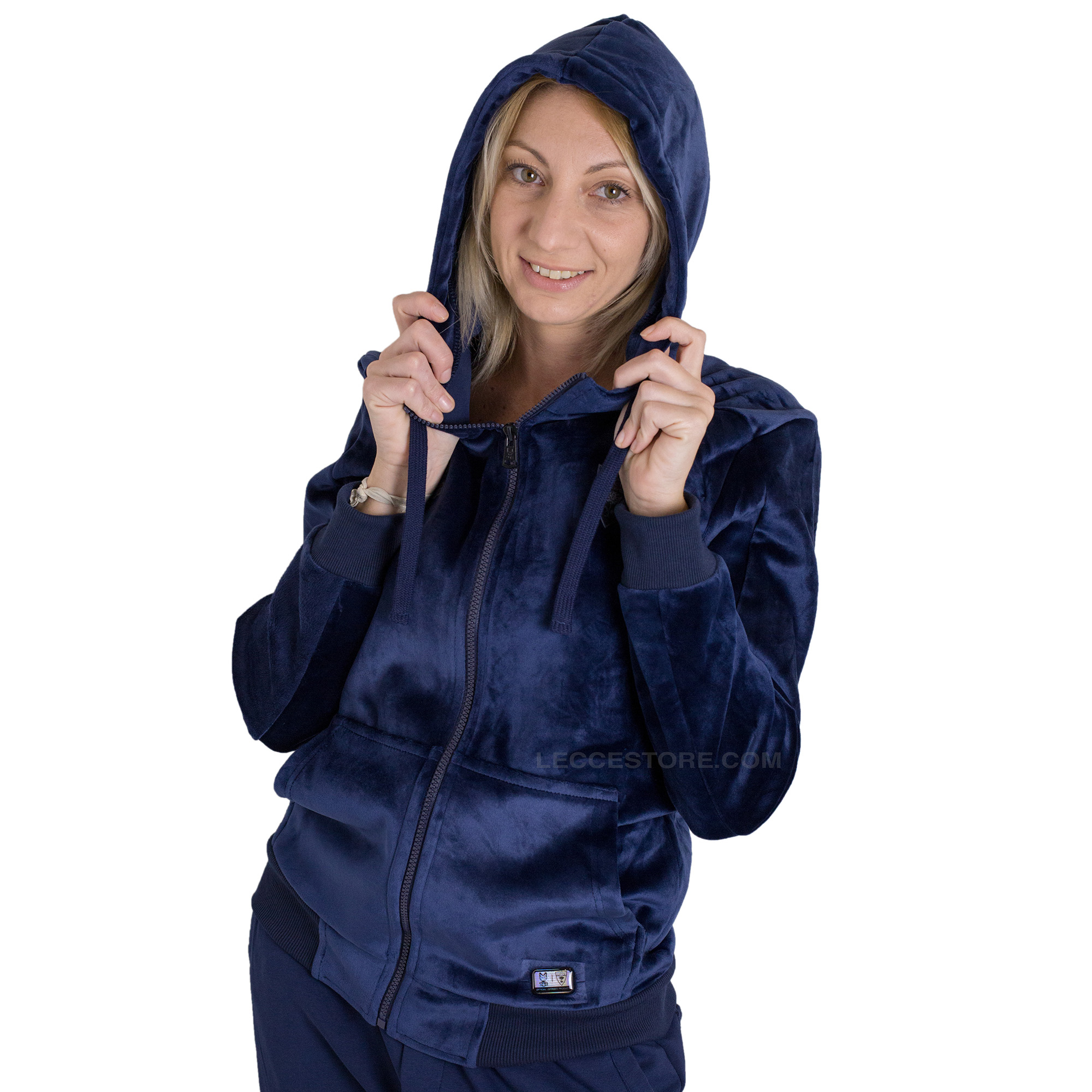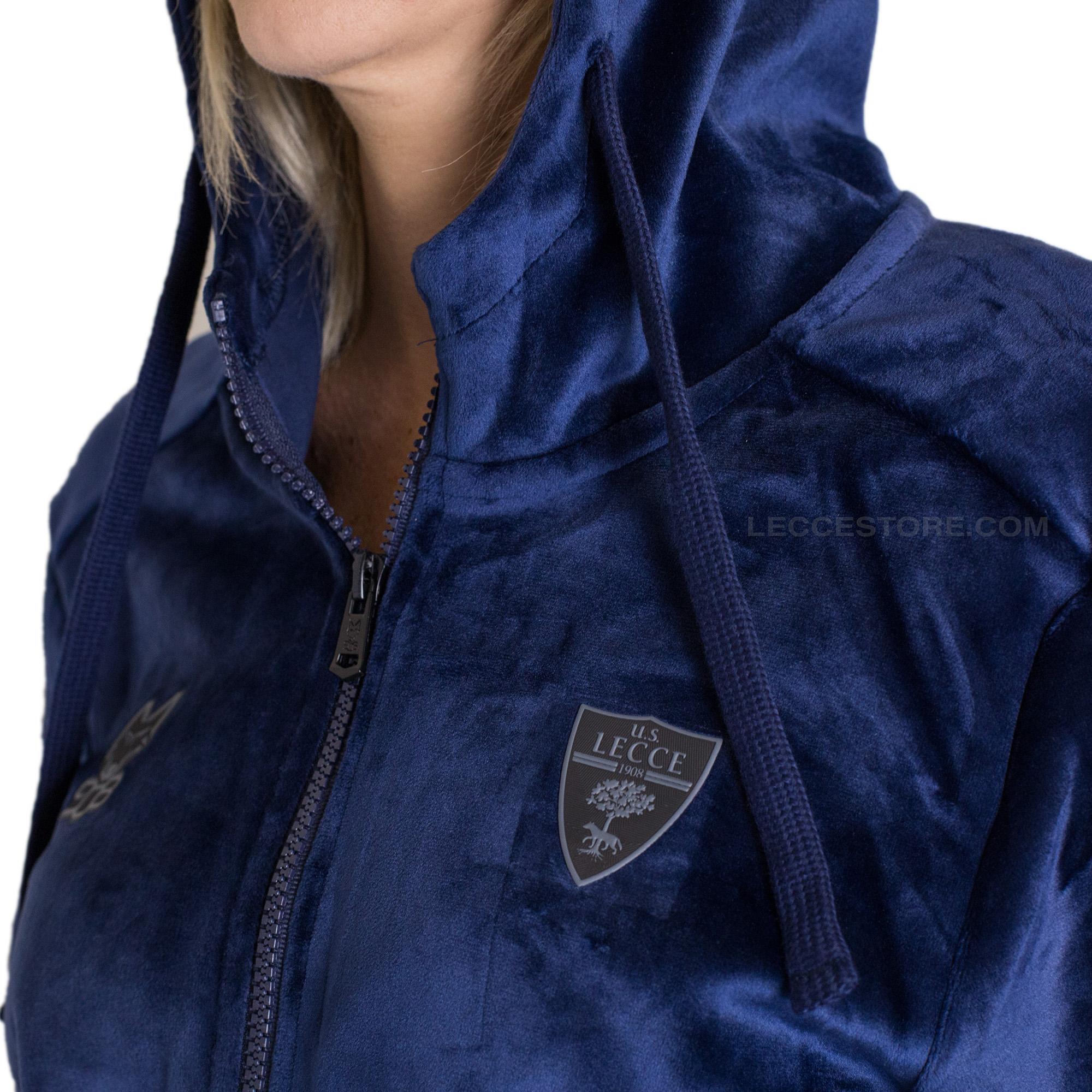 M908 – FELPA CAPPUCCIO + ZIP U.S.LECCE BLU VELLUTO ESTERNO BAMBINO