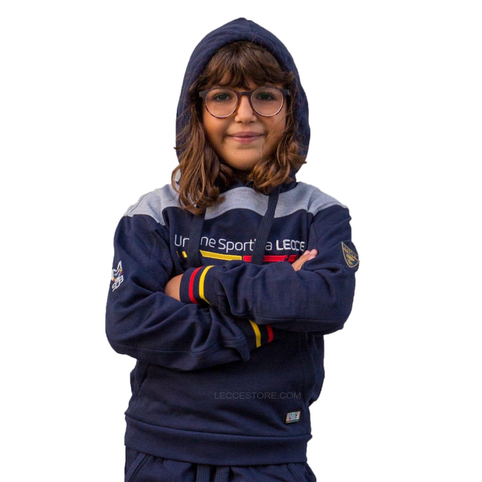 M908 – FELPA U.S.LECCE RAPPRESENTANZA BLU – GRIGIA CAPPUCCIO BAMBINO