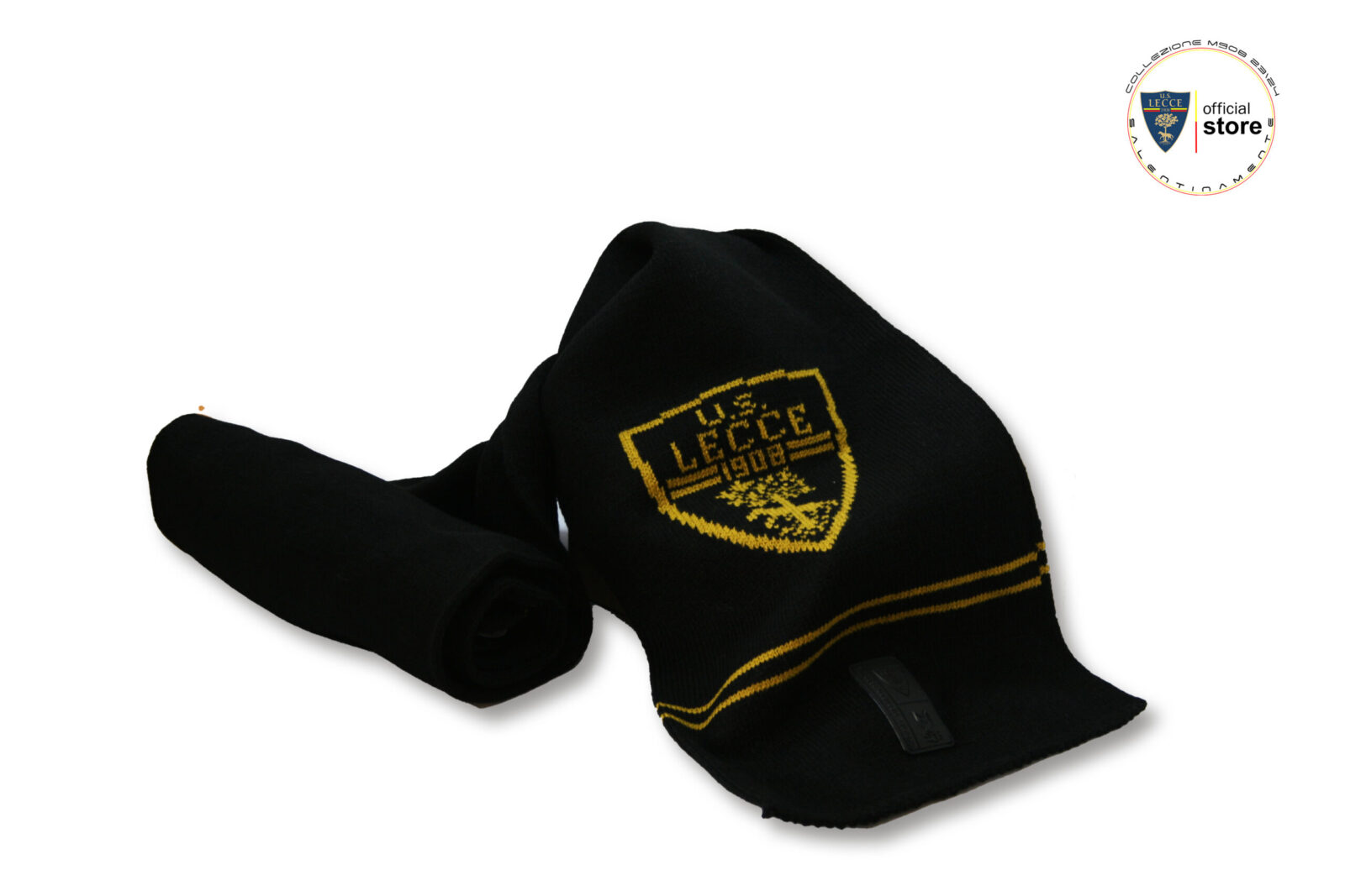 M908 -SCIARPA UNIONE SPORTIVA LECCE NERA INSERTI ORO
